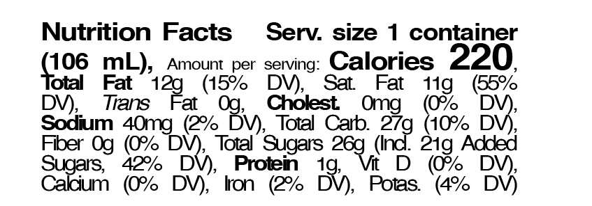 INGREDIENTS: coconut cream, coconut milk, alphonso mango puree (alphonso mango, sugar, water, citric acid), sugar, invert sugar (sugar, water, citric acid), kosher salt