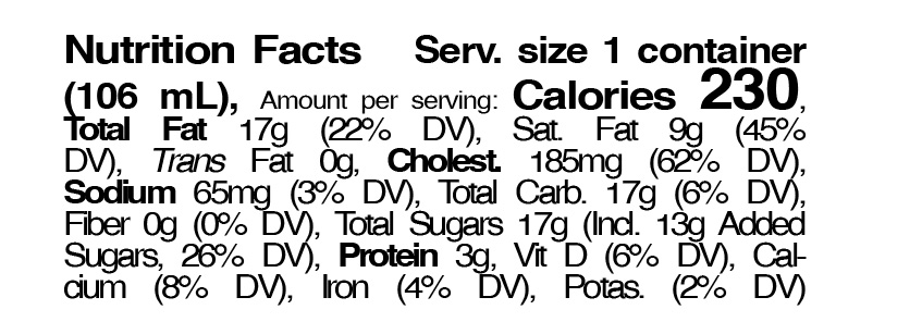 INGREDIENTS: cream, skim milk, sugar, egg yolk, vanilla extract, vanilla bean, kosher salt
